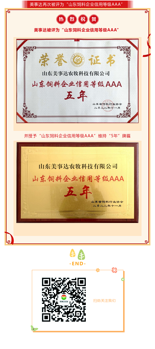 · 恭喜美事達成為第一批“現(xiàn)代畜牧業(yè)齊魯樣板飼料獸藥示范生產(chǎn)企業(yè)”