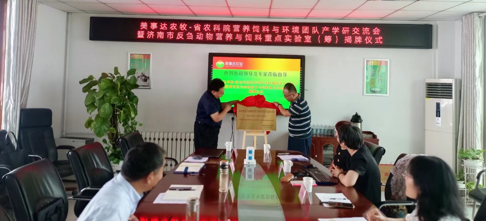 ? ? 2023年7月20日上午9點30分,在山東美事達農牧科技有限公司順利舉行美事達農牧-省農科院營養飼料與環境團隊產學研交流會暨濟南市反芻動物營養與飼料重點實驗室(籌)揭牌儀式。濟陽區科技局領導和山東省農業科學院盛清凱博士團隊參會并出席揭牌儀式。 領導及專家致辭 揭牌儀式