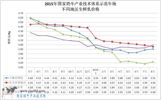 奶牛體系對2015年上半年(截止到2015年8月份,個別數據更新到11月份)的生鮮乳價格、生鮮乳質量、大宗商品進口和大型乳品企業收奶情況進行統計分析,對當前和后續的奶業形勢進行分析判斷。供政府主管部門參考。